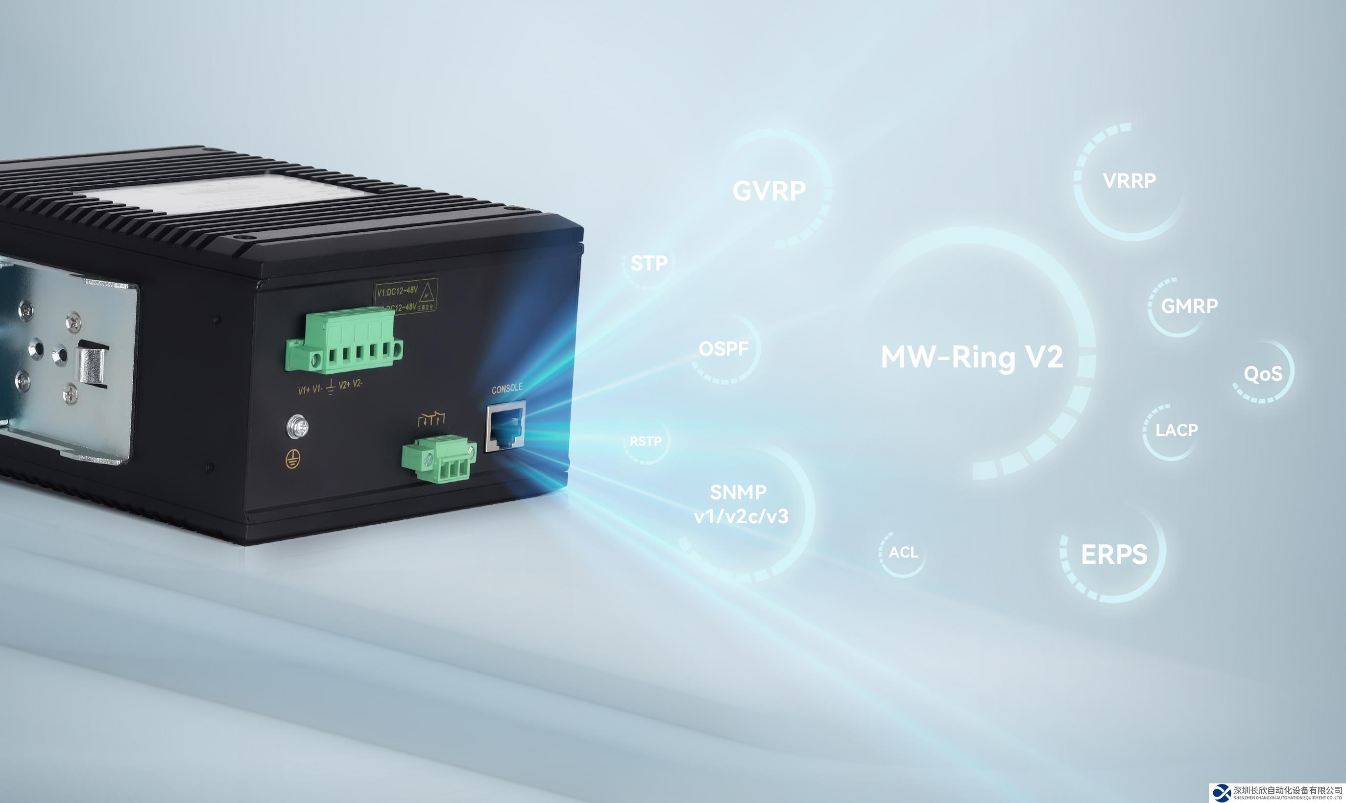 強三層、高帶寬、小體積、多接口、低功耗、IP40高效散熱、EMC 4級