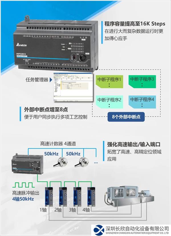 為響應(yīng)行業(yè)市場工藝升級的需求,臺達推出新款升級機型DVP-EC5系列,延續(xù)DVP-EC3系列簡單易用的特點,優(yōu)化控制器的處理能力,助力用戶提升設(shè)備競爭力。